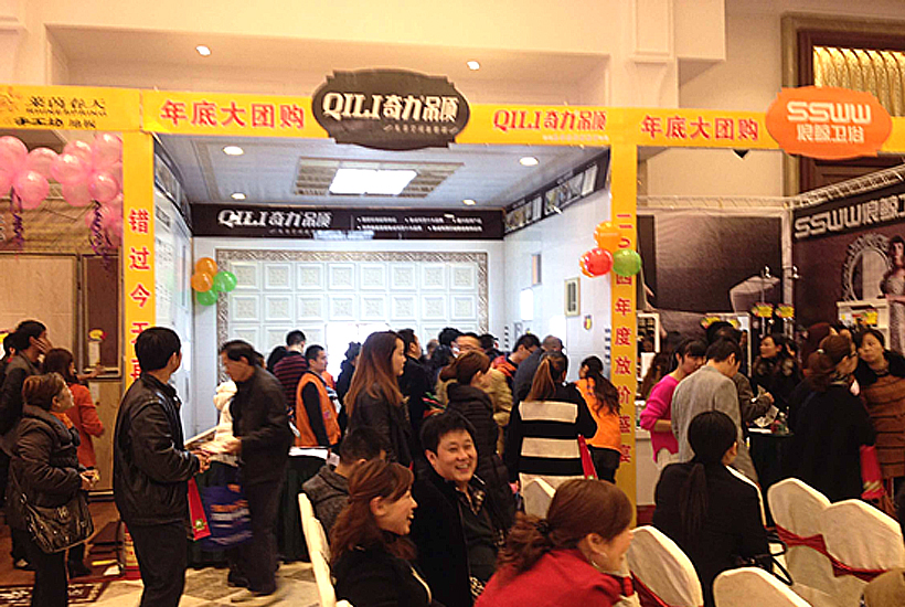 活動當天,酒店門外車水馬龍;活動大廳人潮如流。氣勢恢宏的活動,以高檔大氣的場地為依托,完美構建消費者滿意的購物盛堂。奇力作為吊頂類知名品牌,更是當仁不讓。經典咖啡色的渲染,精美展板有序組合各種美式風尚扣板、LED燈具、風暖、換氣等模塊,重點突出體驗式環境構建。甫一亮相,充滿格調韻味的美式家居環境,躍然眾人眼前。團購尚未開始,奇力展位選購狂潮已經展開。