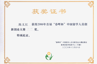 教育部首屆“春暉杯”中國留學(xué)人員創(chuàng)新創(chuàng)業(yè)大賽頒獎(jiǎng)活動(dòng)于12月28日在廣州舉行,我司董事長陳義紅博士榮獲優(yōu)秀獎(jiǎng)。