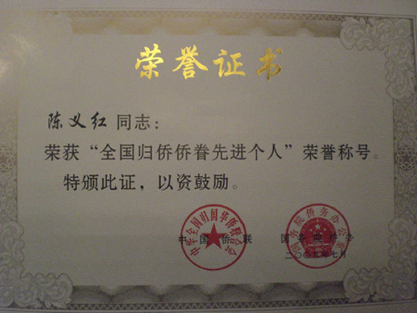 祝賀陳義紅當(dāng)選全國(guó)歸僑僑眷先進(jìn)個(gè)人