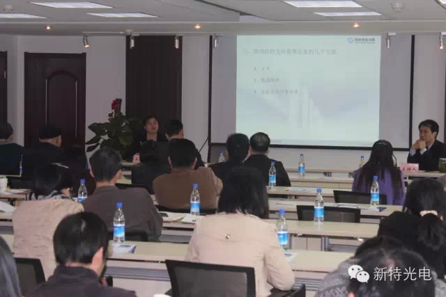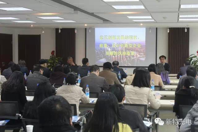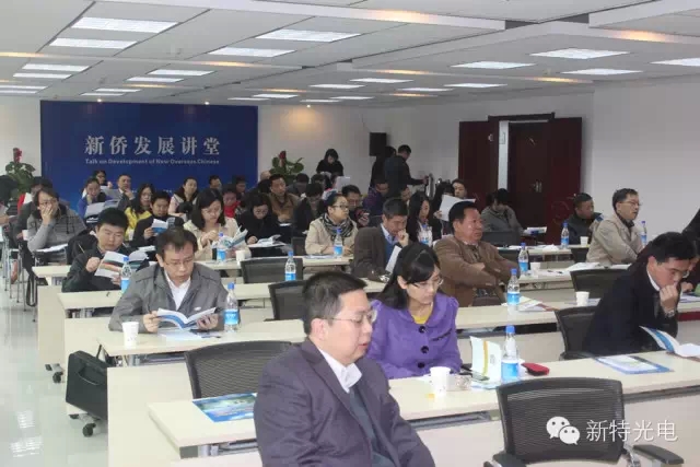 “新僑發(fā)展講堂”于上于2014年11月11日上午9:00在新特光電工業(yè)園內(nèi)為僑服務(wù)中心開講,武漢市僑聯(lián)主席秦峰致開講辭,武漢市科技局副局長趙峰、 武漢市科技局調(diào)研員李和宇為我們解讀“武漢創(chuàng)新發(fā)展的現(xiàn)狀、前景及對創(chuàng)新型企業(yè)發(fā)展的扶持政策”,深度介紹武漢市有關(guān)科技項(xiàng)目的申報(bào)、評審,為申請武漢市 的科技項(xiàng)目答疑解惑,幫助新僑專業(yè)人士獲得政府科技基金支持!