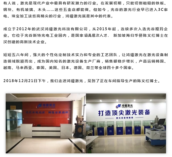 原稿發(fā)表于光谷金融中心(微信公眾號(hào))/瞪羚專訪第二期--激光產(chǎn)業(yè)篇/2019/01/10。