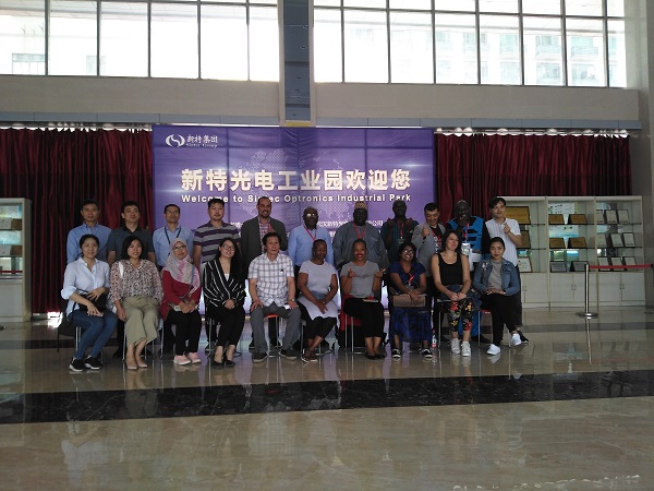 9月20日上午,來自一帶一路國家南非、泰國、多米尼加、也門、博茨瓦納、烏干達、安哥拉等聯(lián)合國科技促進發(fā)展委員會成員中的14個發(fā)展中國家的政府官員與專家參觀新特光電工業(yè)園暨僑邑科技孵化器,陳義紅博士陪同參觀,并座談。