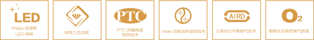 全機采用納米環保材料 LED采用無閃頻、無炫光60赫茲 PTC采用熱敏超導電阻具有急速 升溫除濕功效