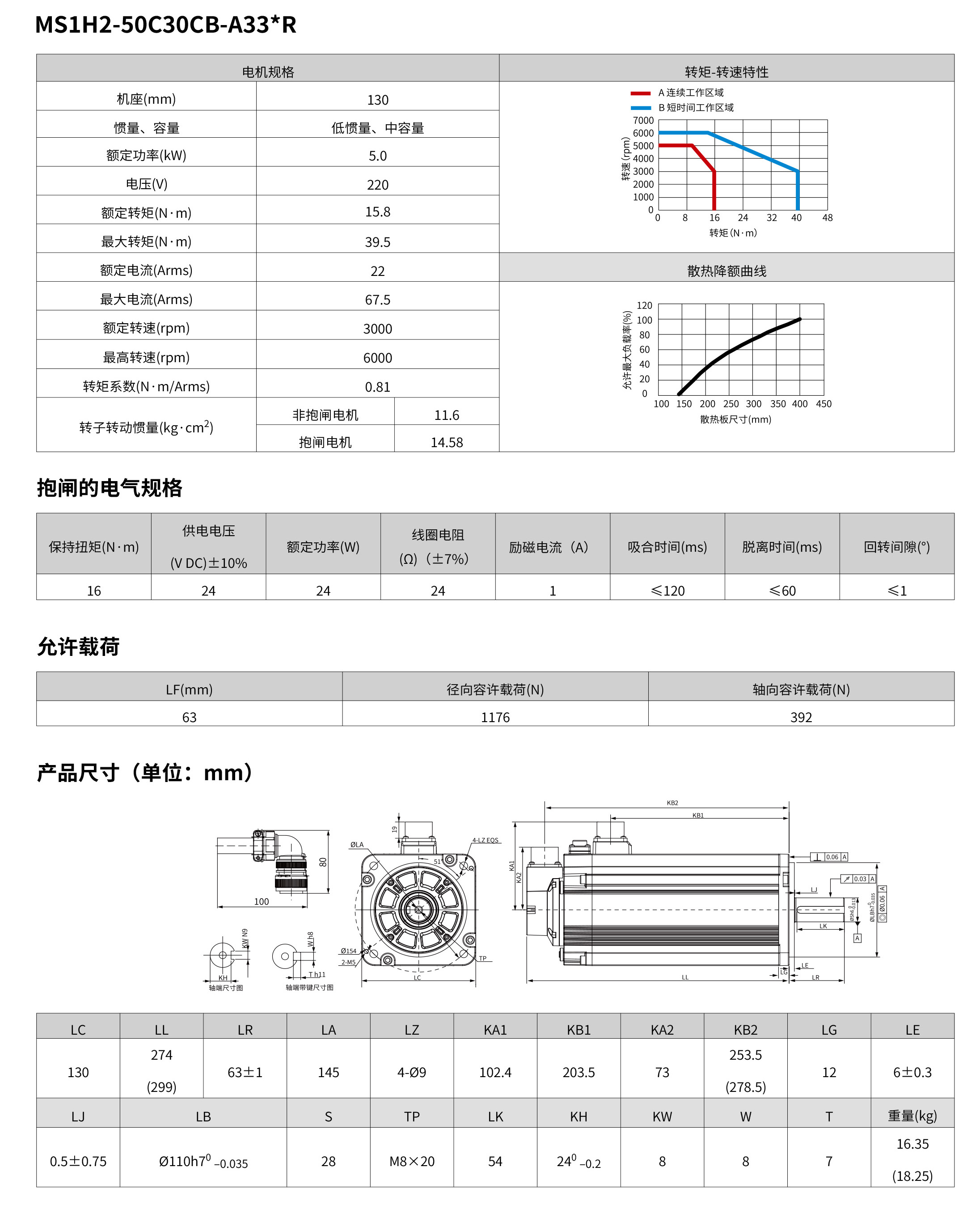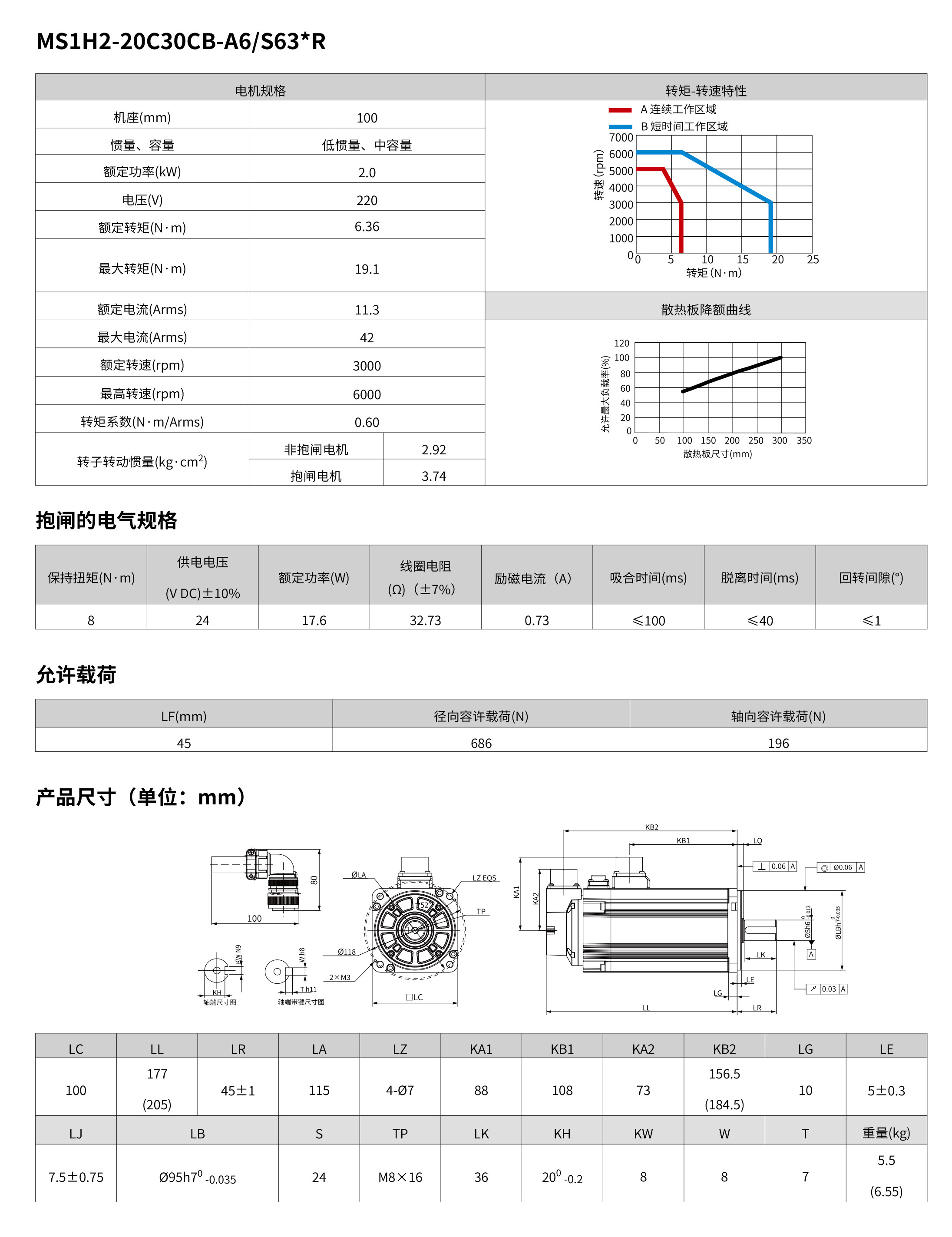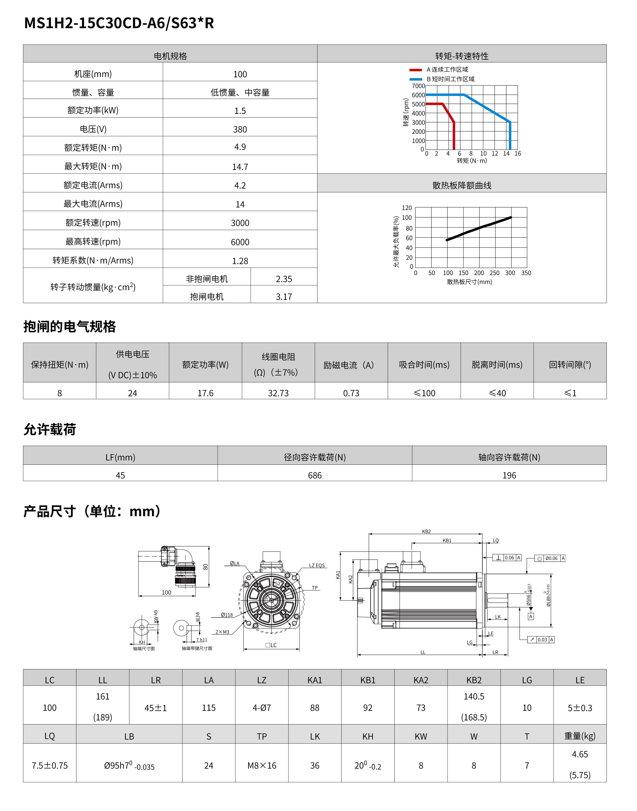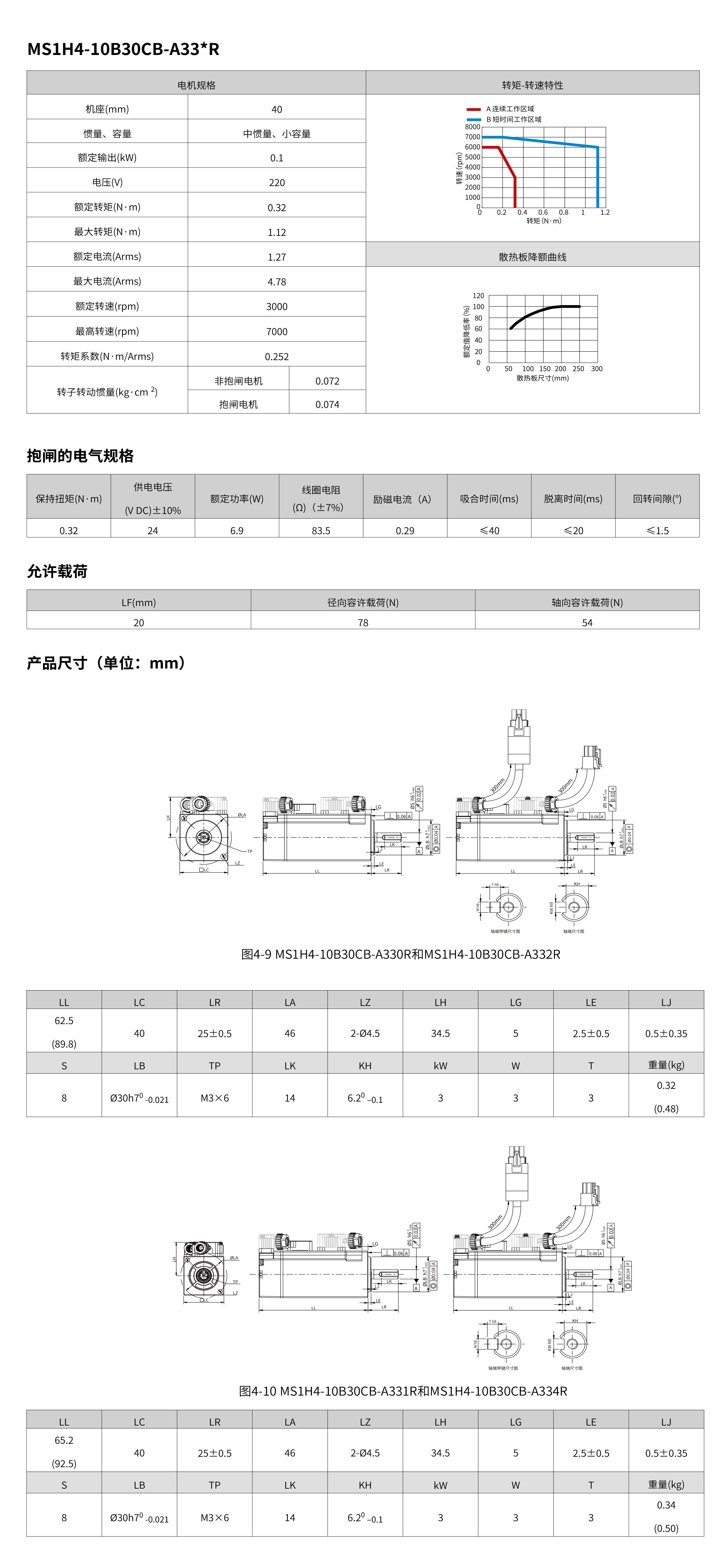 更高轉(zhuǎn)速:MS1H1 和 MS1H4 (40/60/80 機(jī)座 ) 最高轉(zhuǎn)速從 6000rpm 提升到 7000rpm;MS1H2 機(jī)型最高轉(zhuǎn)速從 5000rpm 提升到 6000rpm;MS1H3(130/180 機(jī)座)最高轉(zhuǎn)速從 3000rpm 提升到 4500rpm(說明:帶 26 位 &23 位編碼器機(jī)型)
