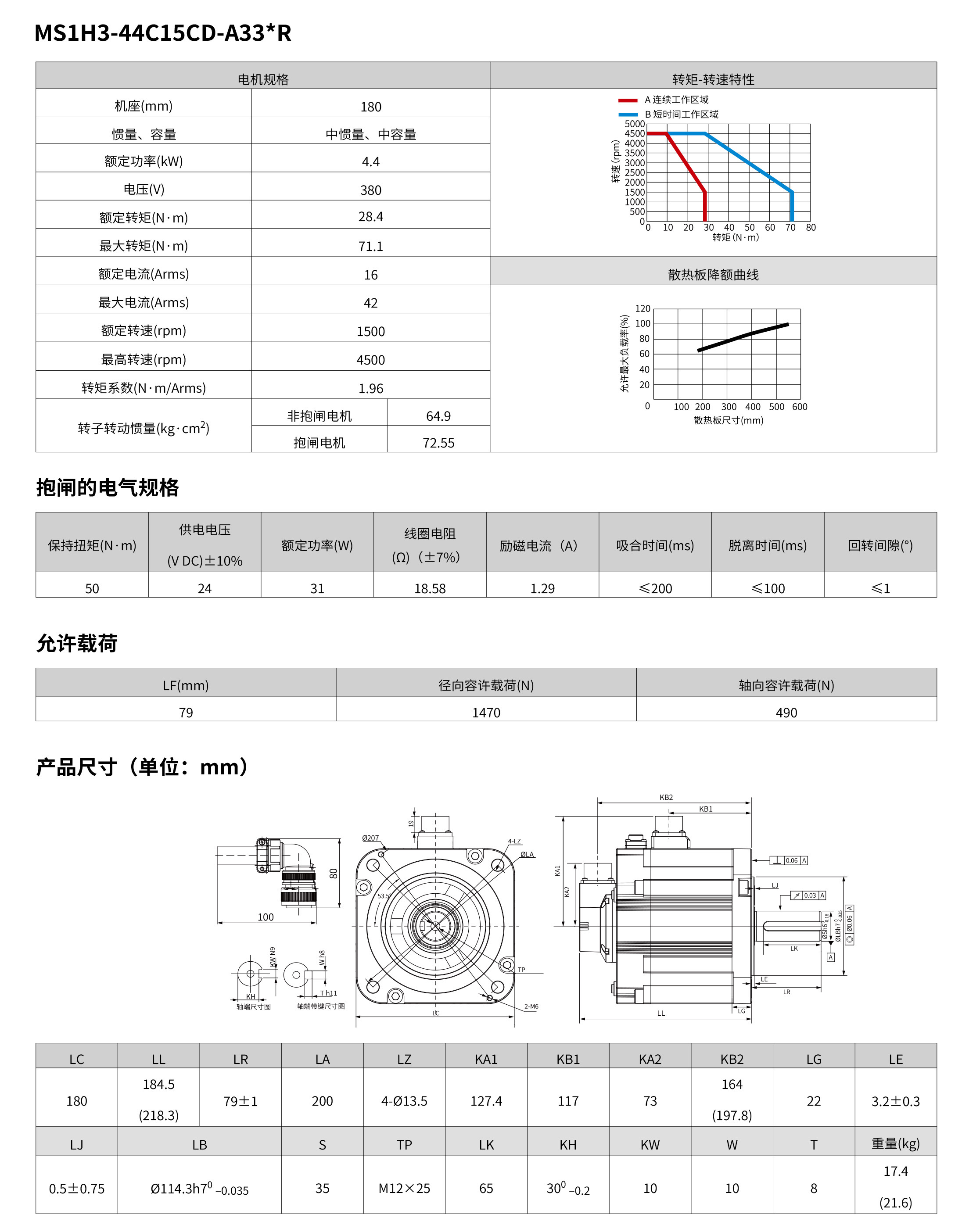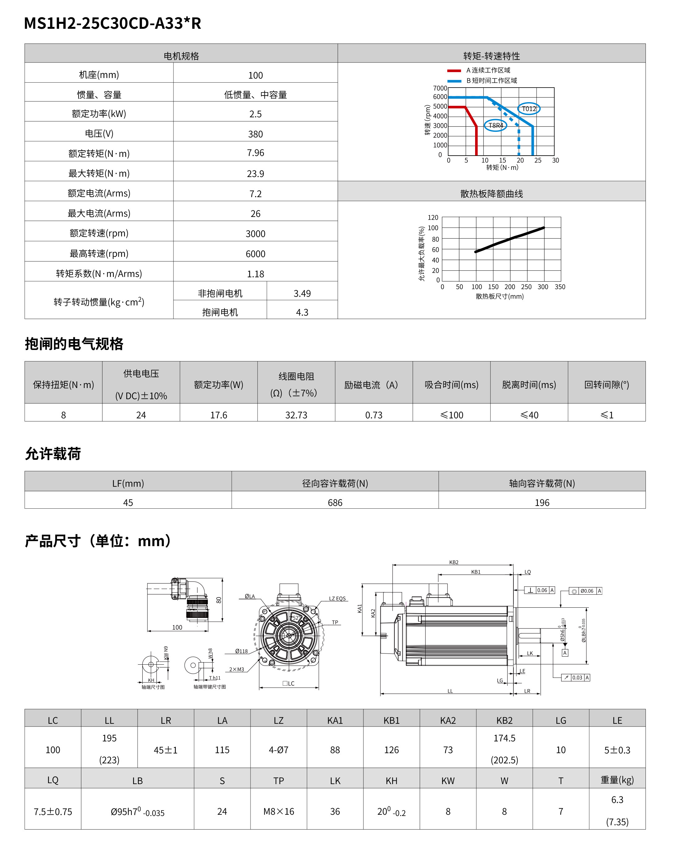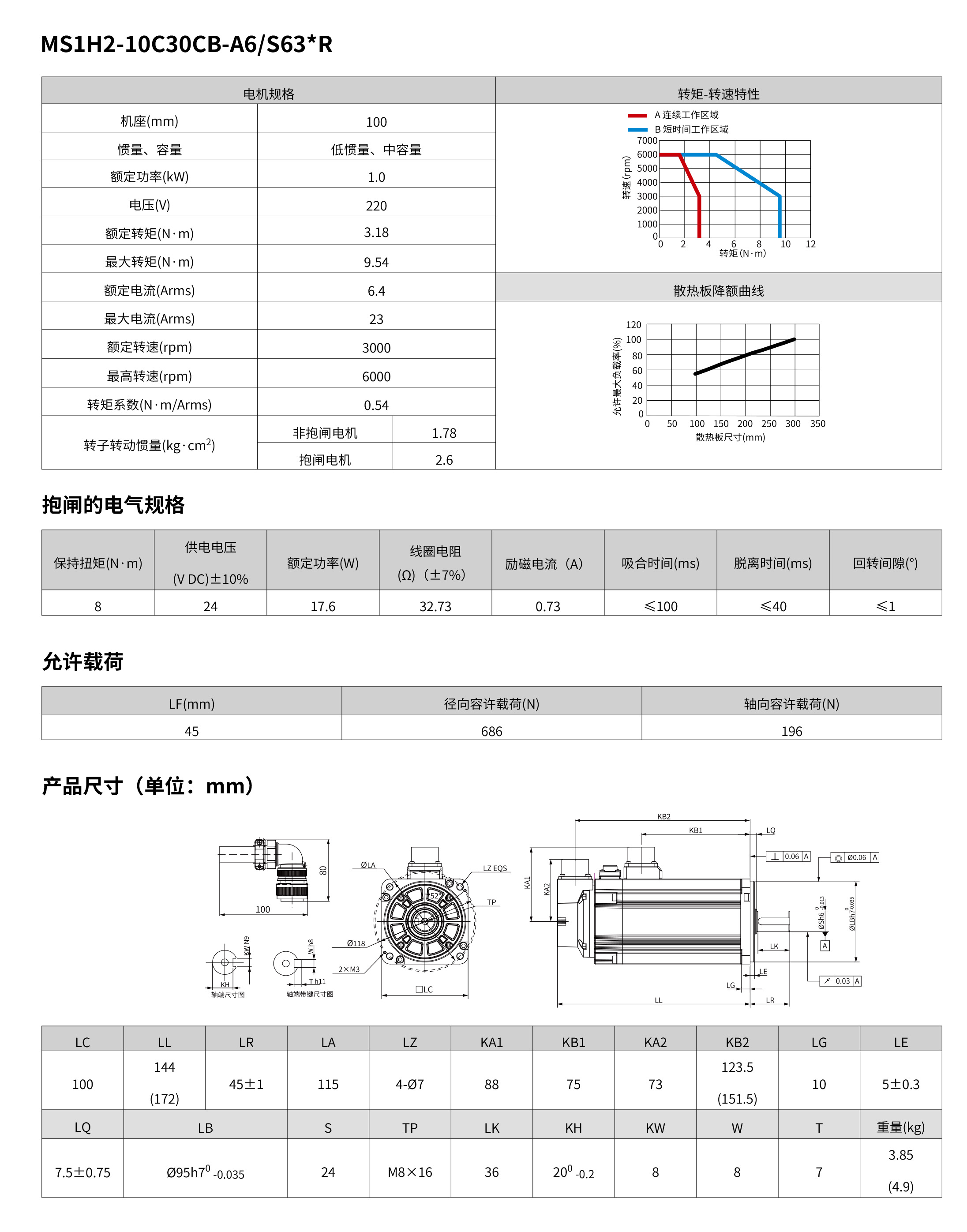 更高轉(zhuǎn)速:MS1H1 和 MS1H4 (40/60/80 機(jī)座 ) 最高轉(zhuǎn)速從 6000rpm 提升到 7000rpm;MS1H2 機(jī)型最高轉(zhuǎn)速從 5000rpm 提升到 6000rpm;MS1H3(130/180 機(jī)座)最高轉(zhuǎn)速從 3000rpm 提升到 4500rpm(說明:帶 26 位 &23 位編碼器機(jī)型)