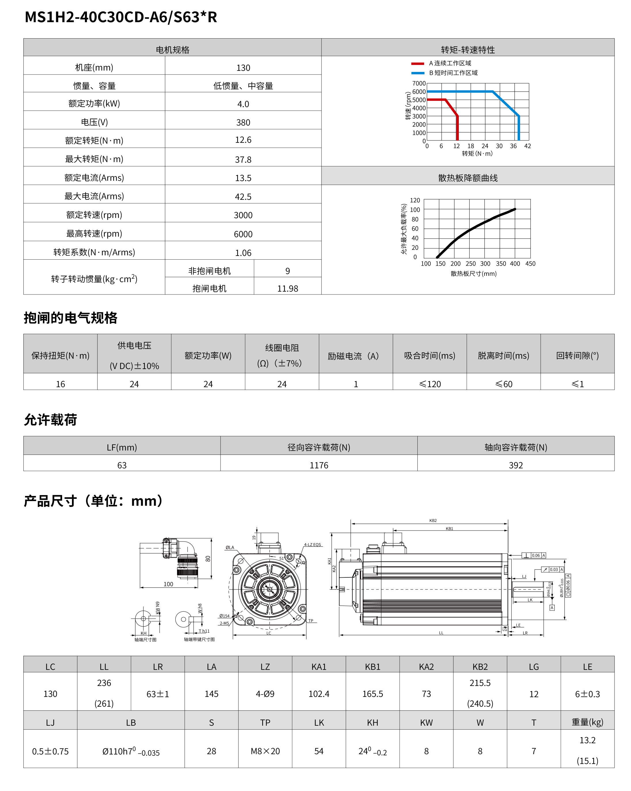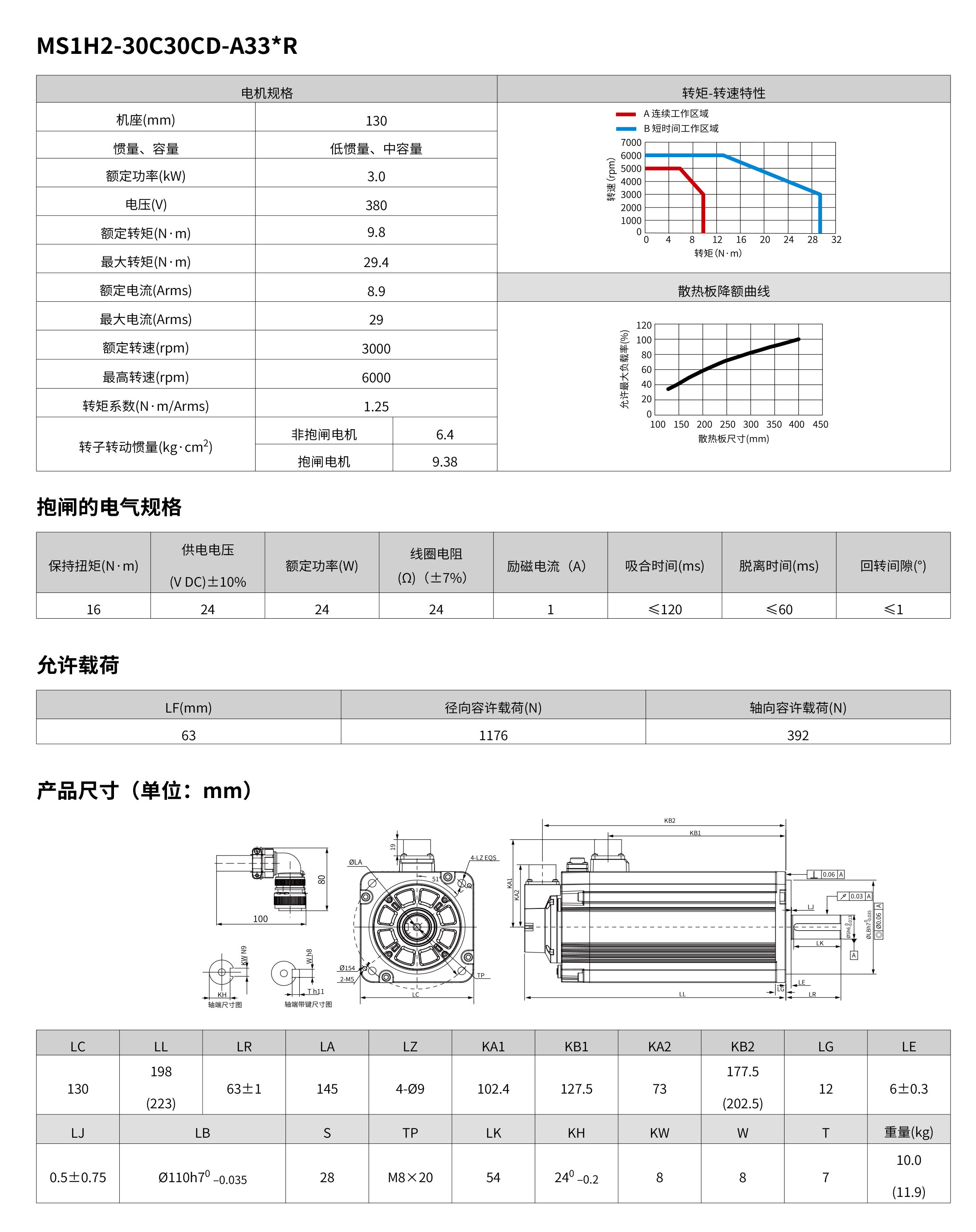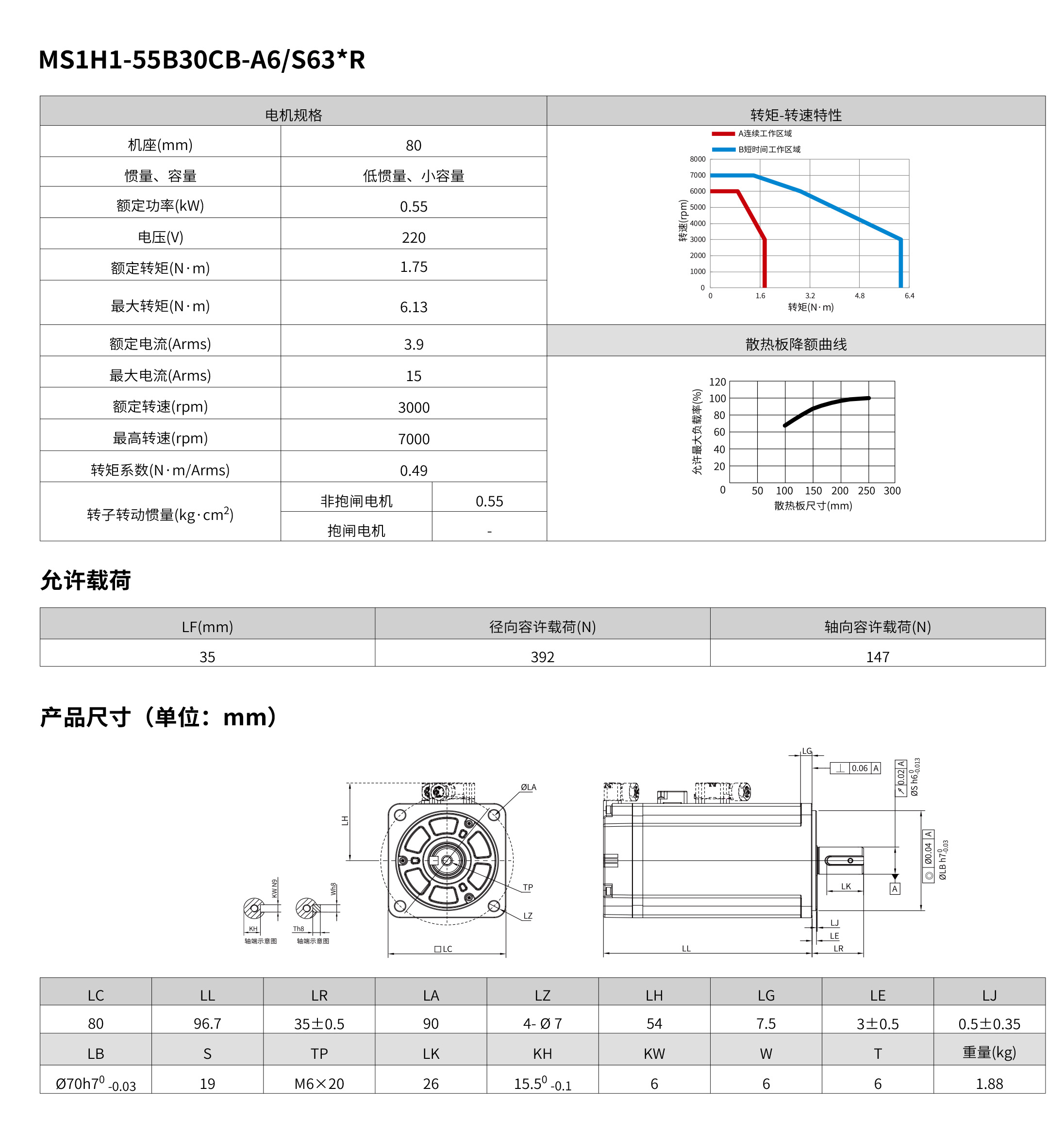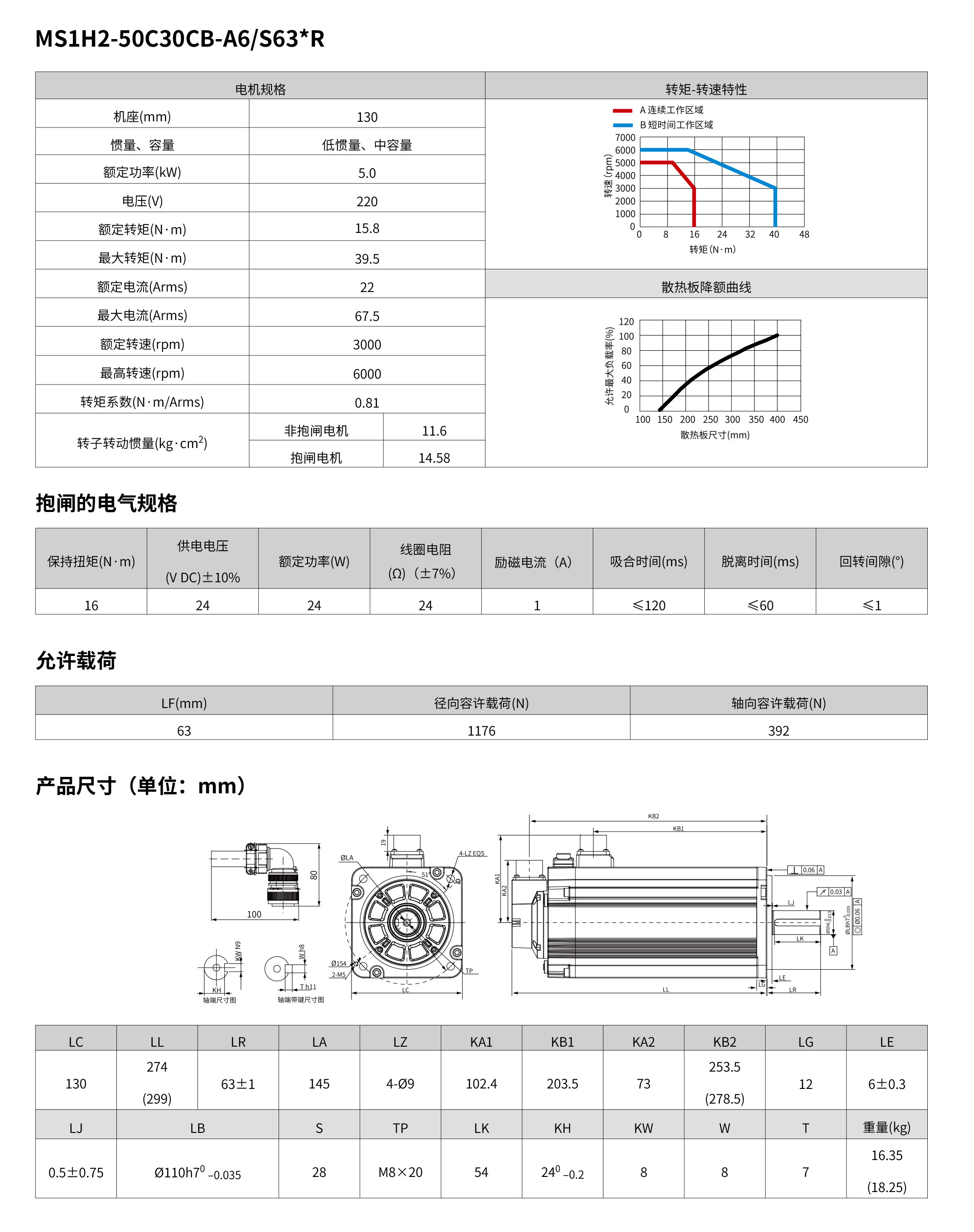 更高轉(zhuǎn)速:MS1H1 和 MS1H4 (40/60/80 機(jī)座 ) 最高轉(zhuǎn)速從 6000rpm 提升到 7000rpm;MS1H2 機(jī)型最高轉(zhuǎn)速從 5000rpm 提升到 6000rpm;MS1H3(130/180 機(jī)座)最高轉(zhuǎn)速從 3000rpm 提升到 4500rpm(說明:帶 26 位 &23 位編碼器機(jī)型)