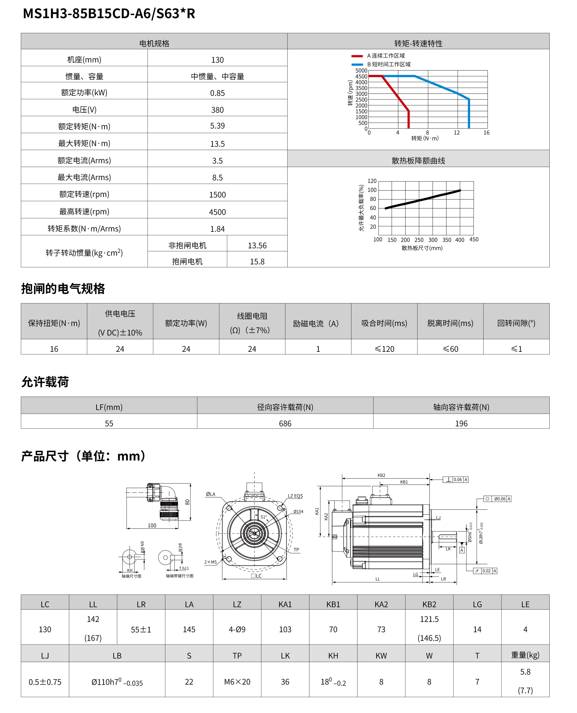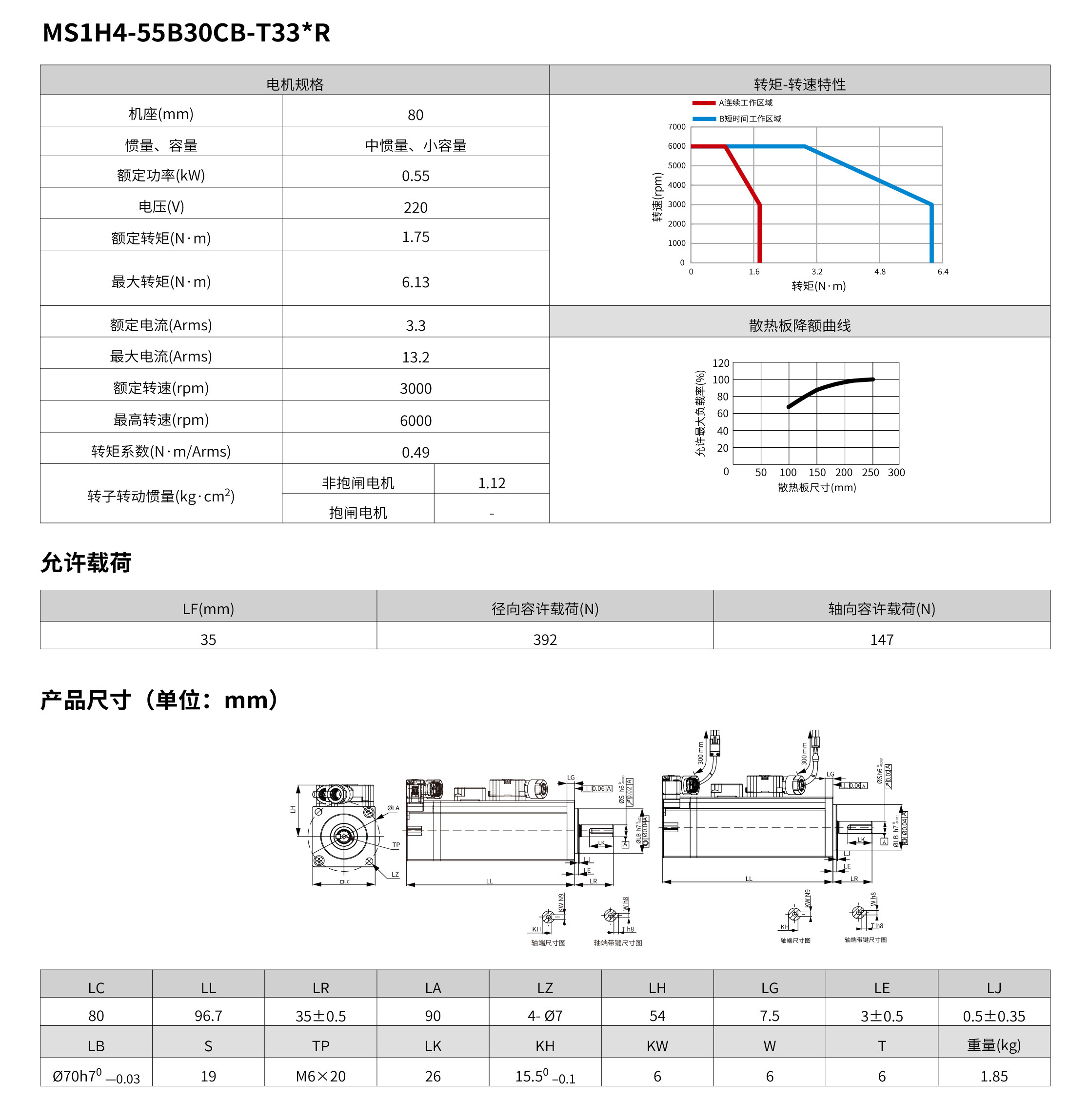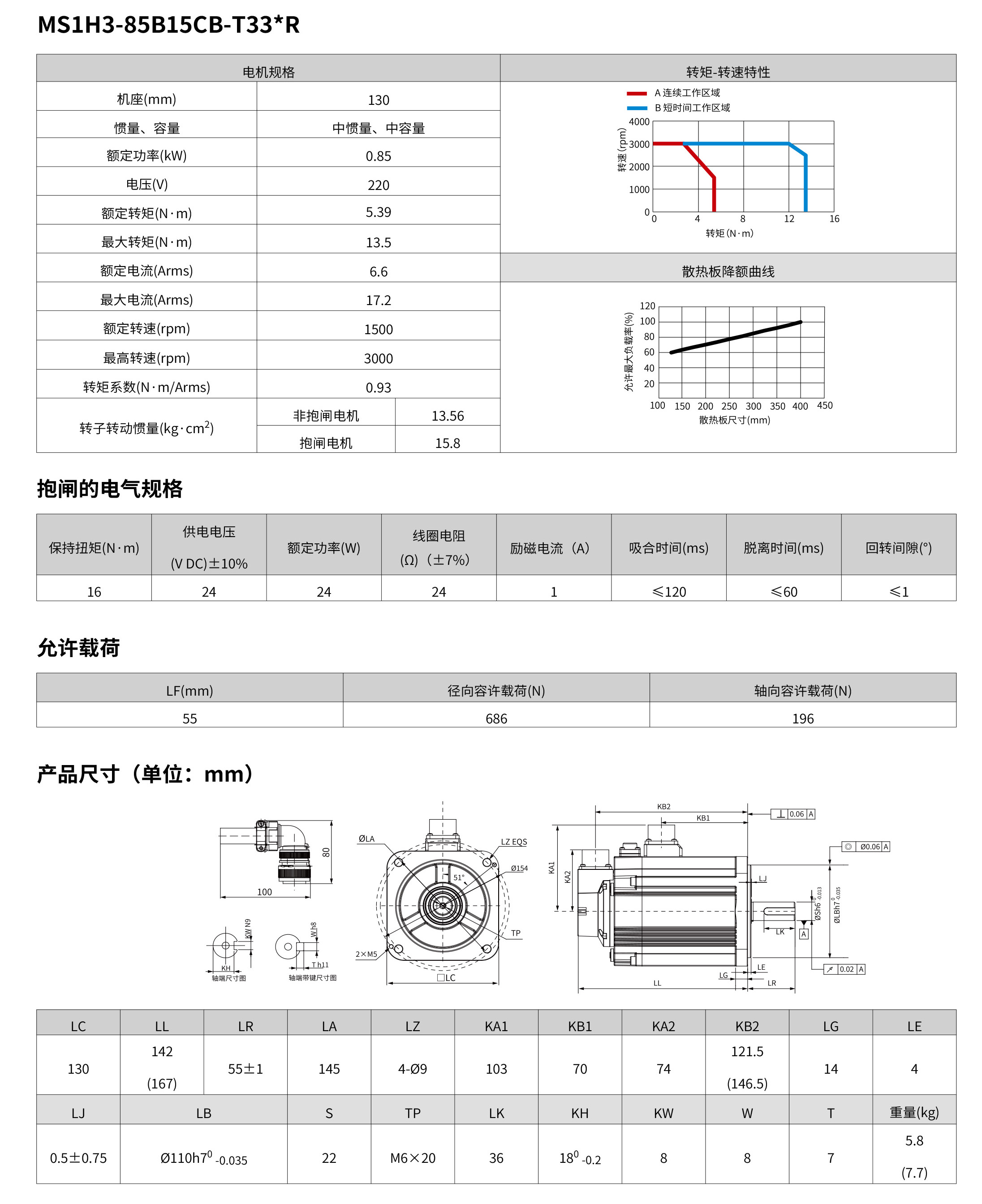 [3]帶T017驅(qū)動器請參考該型號的轉(zhuǎn)矩-轉(zhuǎn)速特性曲線。