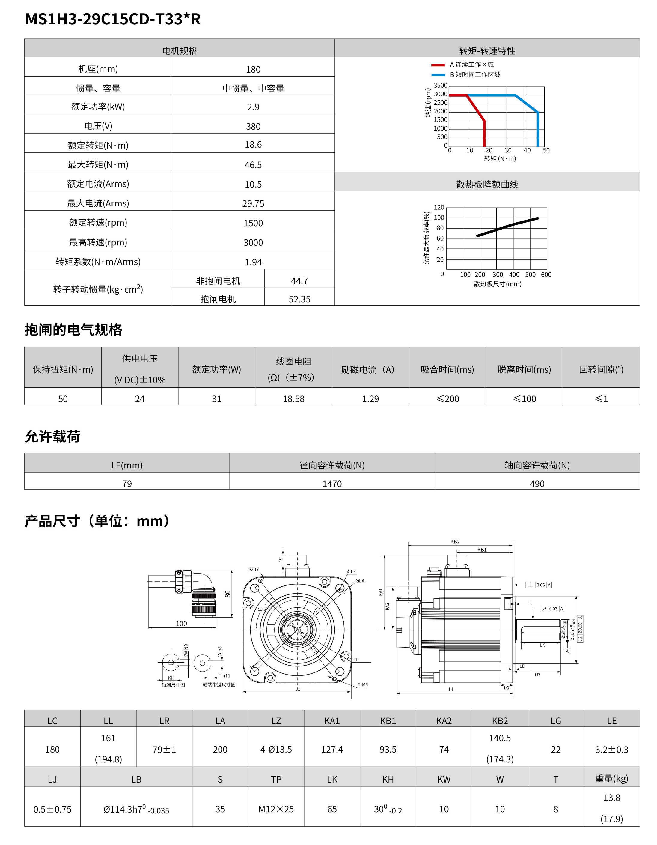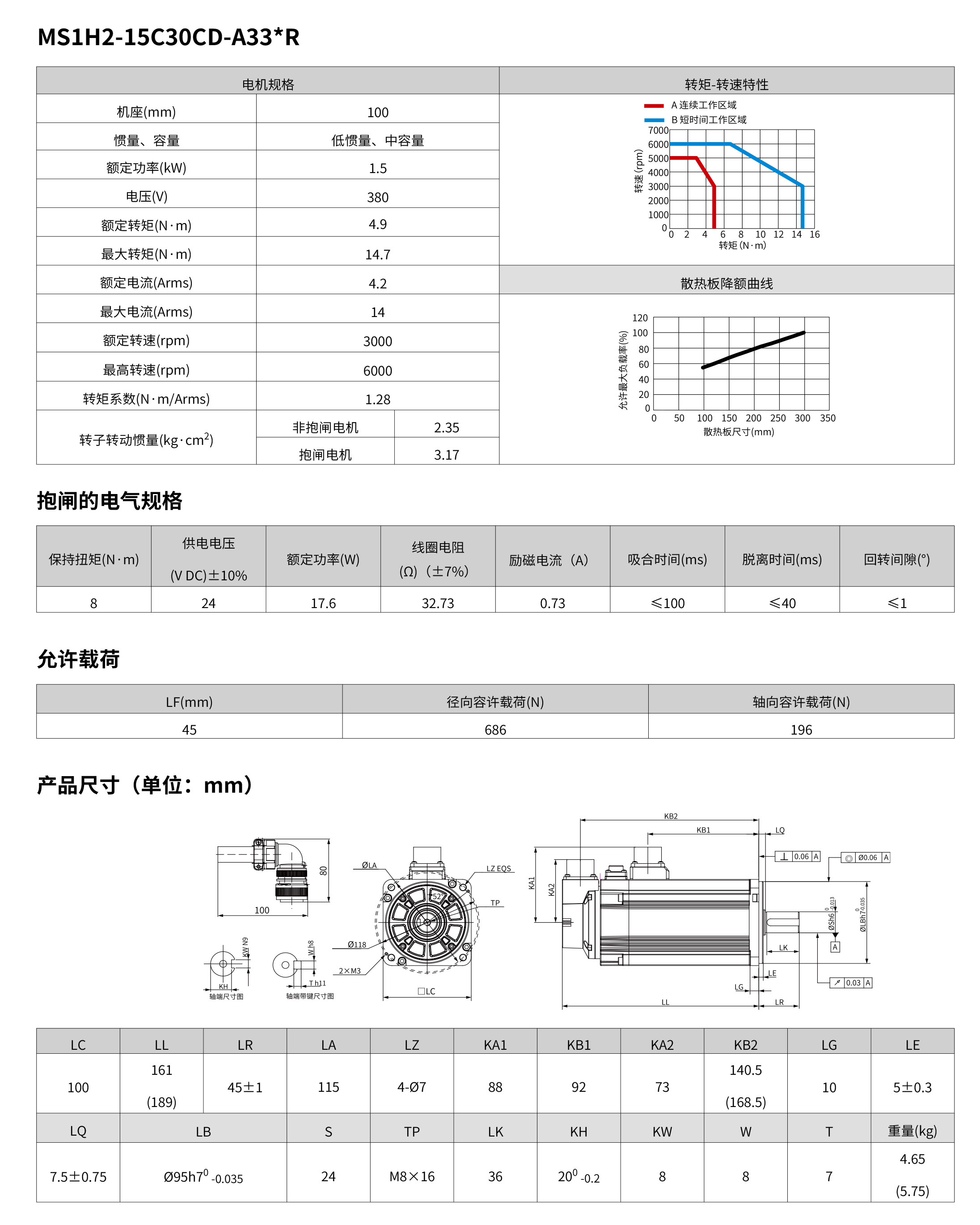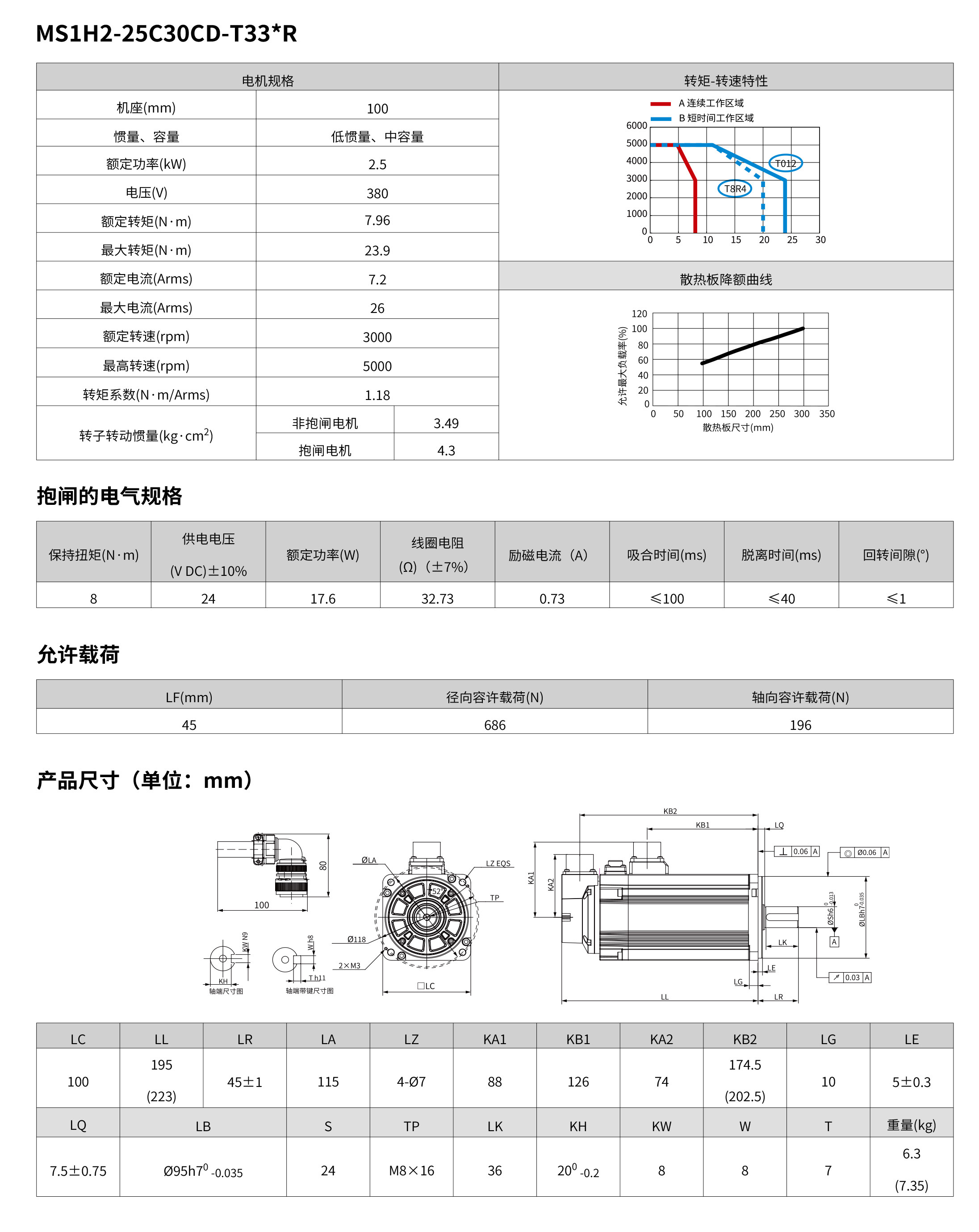 [3]帶T017驅(qū)動器請參考該型號的轉(zhuǎn)矩-轉(zhuǎn)速特性曲線。