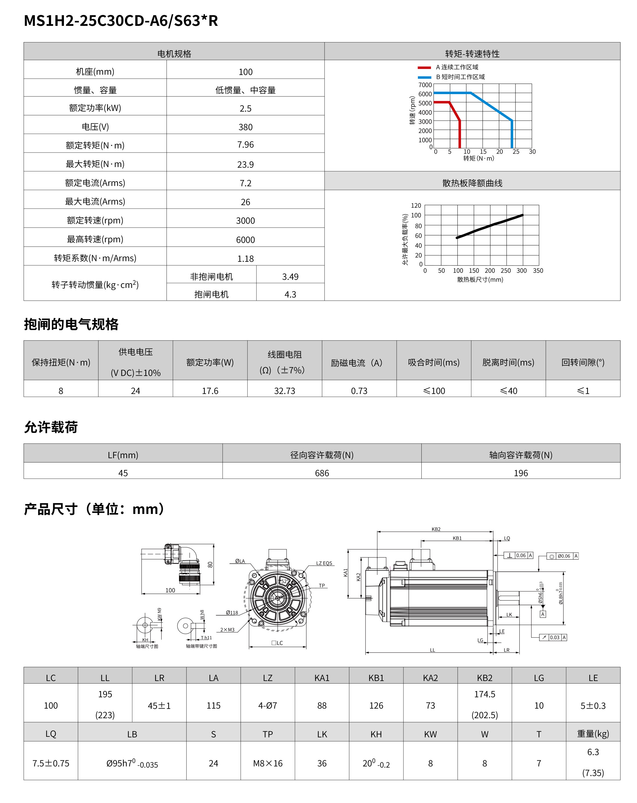 [1]帶S012驅(qū)動器請參考該型號的轉(zhuǎn)矩-轉(zhuǎn)速特性曲線。