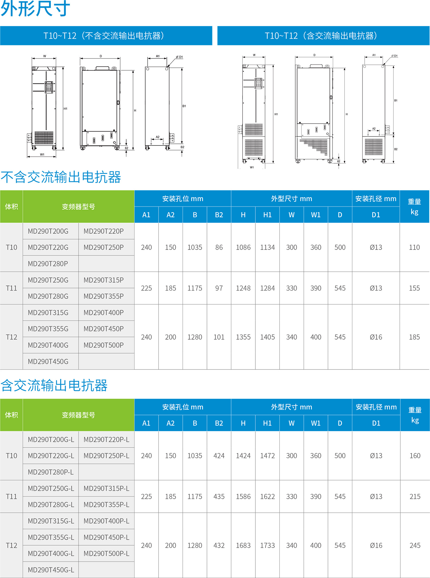 | 型號 | MD290T45 G/55P(B) | MD290T55 G/75P(B) | MD290T75 G/90P(B) | MD290T90 G/110P | MD290 T110G/ 132P | MD290 T132G/ 160P | MD290 T160G/ 200P | |||||||||