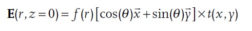 在模擬中,我們通過(guò)求解標(biāo)量和矢量狀態(tài)下的波方程,重現(xiàn)了結(jié)構(gòu)光聚焦的結(jié)果。具體來(lái)說(shuō),對(duì)于漩渦光束,我們將平面波條件替換為以下光條件: