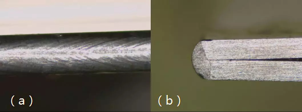圖4(a)為焊縫正面,放大倍數(shù)20倍,焊縫寬度約1.1mm。焊接過程采用惰性氣體保護(hù),焊縫光潔平整、呈銀白色無任何氧化痕跡,焊縫無需任何后期處理。